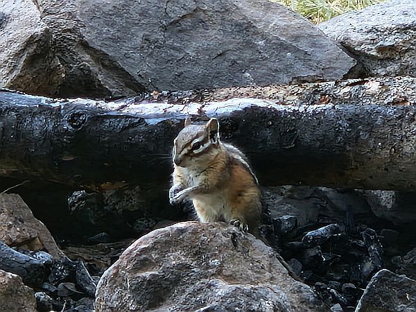 Crazy Woman Creek...also, nicht nur Frauen werden hier verrückt...wir hatten hier so viele Brook Trouts gefangen wie nie zuvor - jeder Wurf ein Biss, egal welche Trockenfliege. Der Bach mäandert viele Meilen tief in den (Märchen-) Wald und es war schon fast unheimlich. Wir mussten sehr darauf achten ob ein Bär oder Elch unterwegs war, da wir viele Spuren und Liegestellen dieser Tiere fanden. Zum Glück kauften wir was hier an allen Flüssen und Wälder notwendig ist/unser Tipp: vor der Reise ein Bär-Spray kaufen ! Aber es gab hier auch einen kleinen süßen Waldbewohner der auf uns aufgepasste...ein Eichhörnchen.